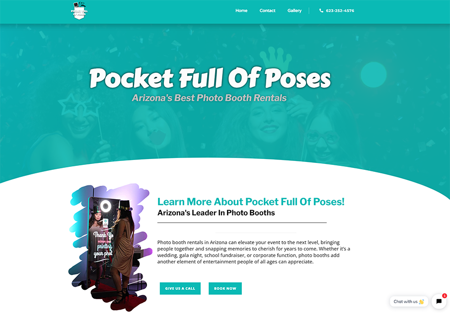 Our goal was to create a captivating logo that steals attention by using a vibrant color palette and a unique design featuring a pocket filled with photo booth props.
